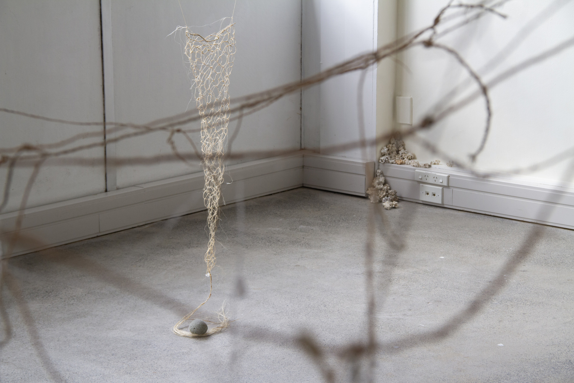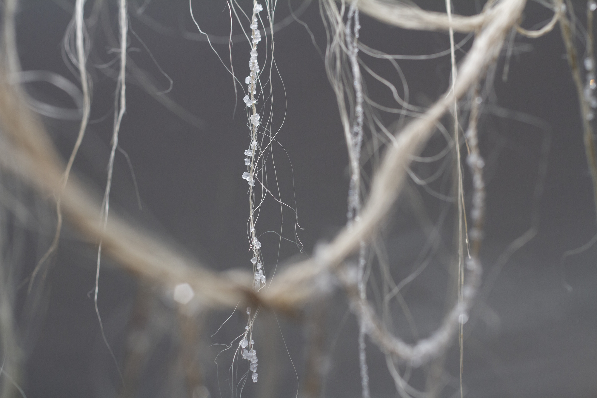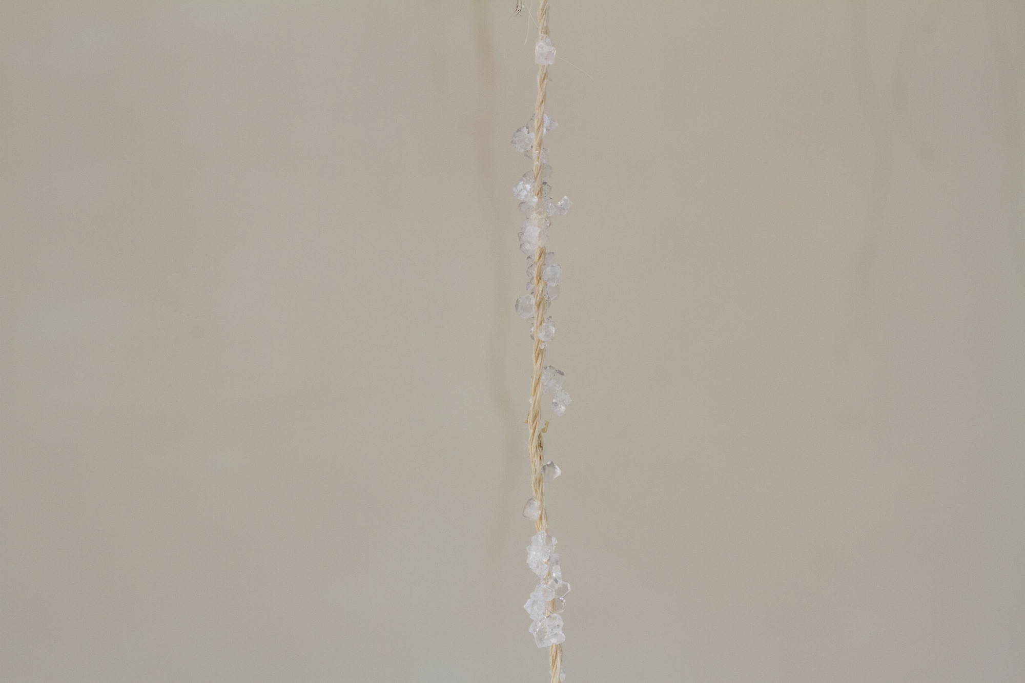 The materials chosen for this installation connect ancient Maori-Moana-nui-a-Kiwa traditions with contemporary practices, encapsulating the historical and cosmological narratives embedded in kōwhatu and stars. We show alignment to contemporary praxis by modes of aho (genealogy and illumination) and modern crystal formulation, utilising alum – this modernity paired with traditional methods of whatu and stone work aims to pull the viewer into an understanding of whakapapa whetu through both a motif of Atuatanga¹ and remembrance to wayfinding.